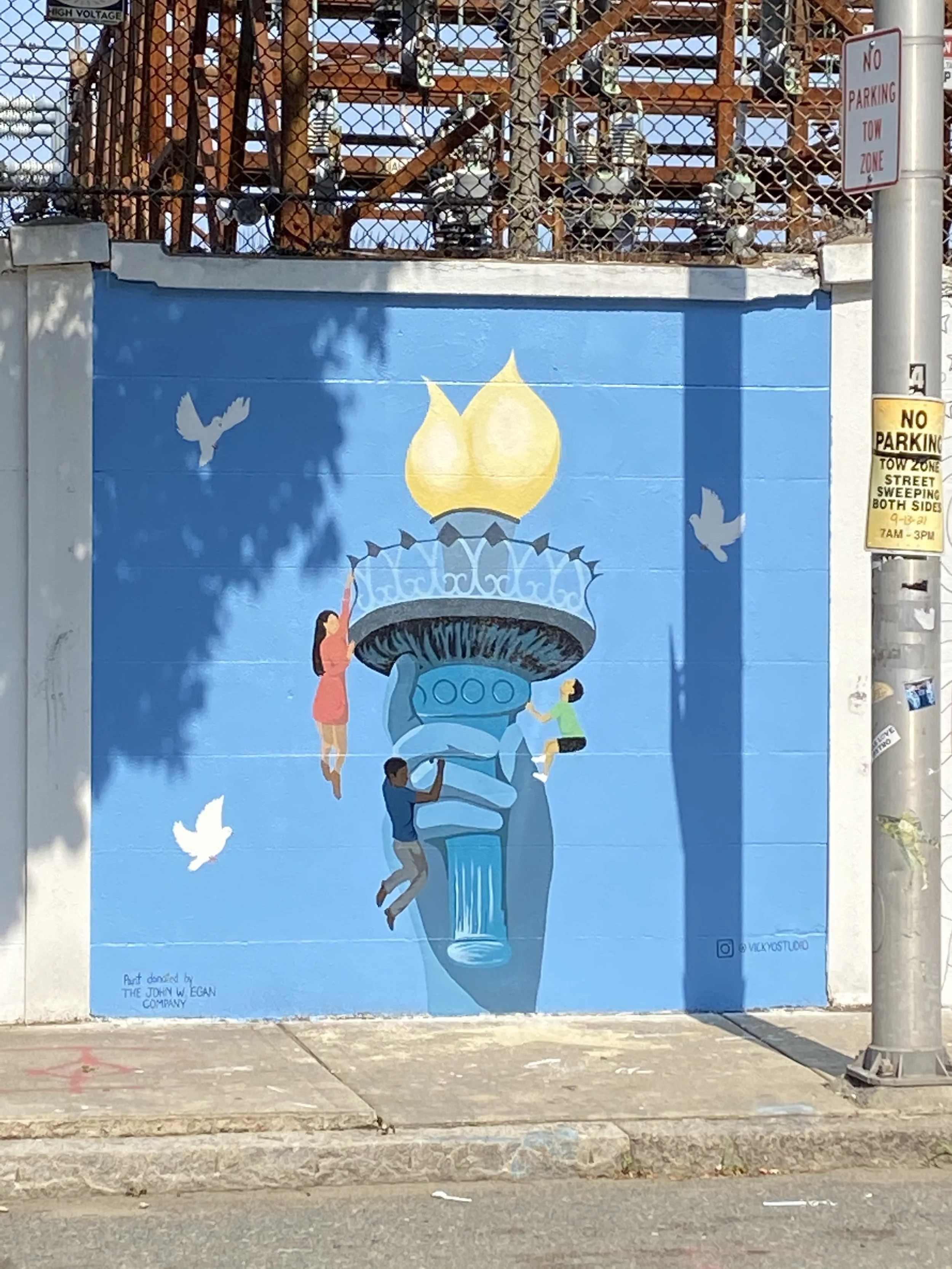 Created for the Punto Urban Art Museum’s ‘American Dream’ outdoor mural exhibit (2021). Named after a poem, of the same name, by Emily Dickinson this mural is about undying hopes, dreams and the struggles to achieve the ‘American Dream’. Located on Peabody St, Salem MA, painted in acrylic. 8ft x 8ft
