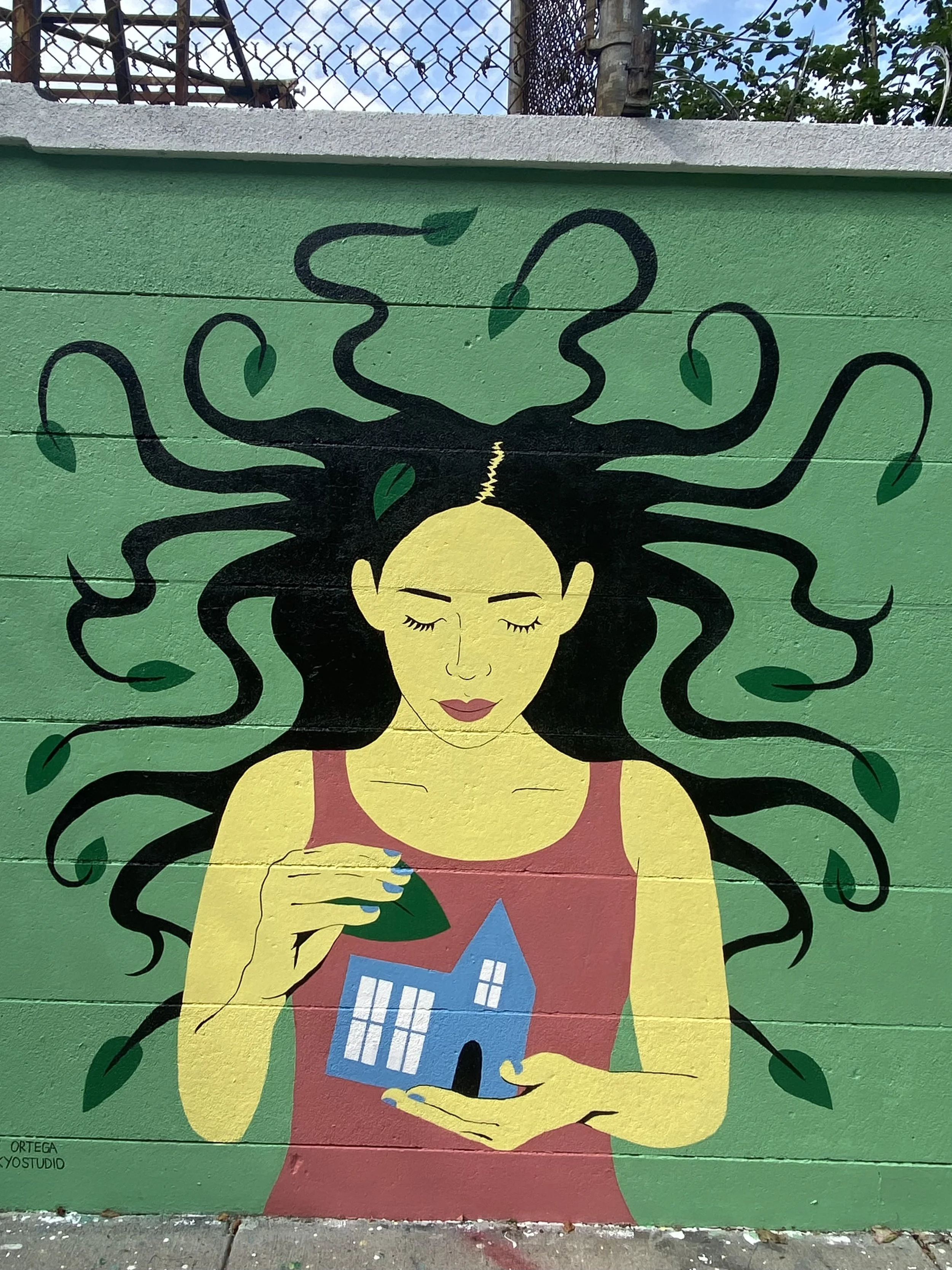 Based on Reyna Grande’s memoir “A Dream Called Home”, my mural is about the challenge of finding and creating your own stable home. Created for the Punto Urban Art Museum’s ‘American Dream’ outdoor mural exhibit (2023). Located on Peabody St, Salem MA, painted in acrylic. 8ft x8ft